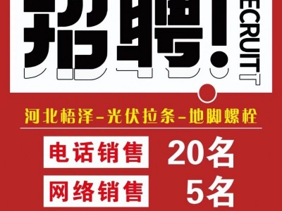河北梧泽-光伏拉条-地脚螺栓 招聘精英 电话销售20名网络销售5名 底薪+提成+公休团建+节假日福利 电话:/ 地址:产业城东区19-8