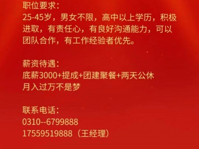 ^_^招聘销售若干名,无责底薪➕提成➕公休