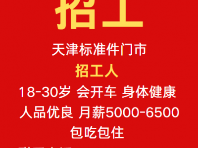 天津标准件门市招工人 要求:18-30岁,会开车,身体健康 ,人品优良,月薪5000-6500包吃包住