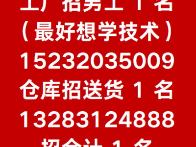 工厂招男工 1 名