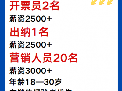 营销人员20名,薪资3000+