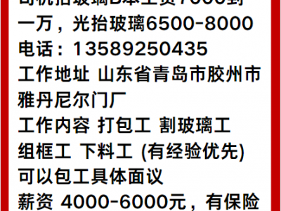 司机抬玻璃B本工资7000到一万,光抬玻璃6500-8000