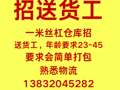 一米丝杠仓库招送货工,年龄要求23-45
