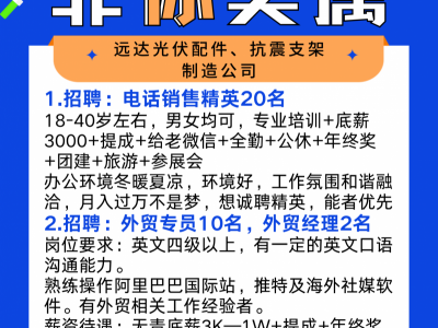 招聘:电话销售精英20名,18-40岁左右,男女均可,专业培训+底薪3000+提成+给老微信+全勤+公休+年终奖+团建+旅游+参展会