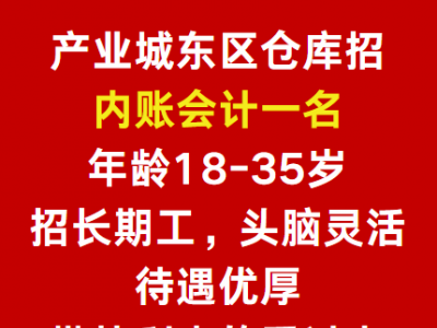 产业城东区仓库招内账会计一名,年龄18-35岁