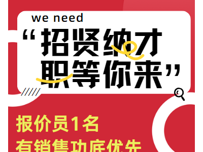招聘报价员1名,有销售功底优先,销售5名,工人1名