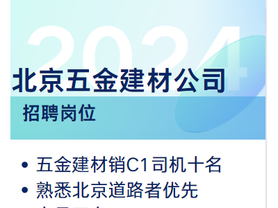 五金建材销C1司机十名 熟悉北京道路者优先,文员五名 要求懂管家婆懂五金建材;