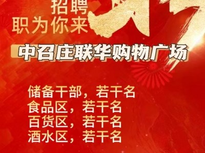 召庄联华购物广场因工作需要现招聘: 理货员5名促销员2名 收银员3名 任职要求: 1. 45岁以下,身体健康; 2. 具有较强的沟通能力及服务意识,吃苦耐劳。<半天班> 工资面议,有工作经验者优先,优秀的团队期待优秀的您的加入! 招聘电话: [玫瑰][玫瑰][玫瑰][玫瑰][玫瑰][玫瑰][玫瑰][玫瑰][玫瑰][玫瑰]