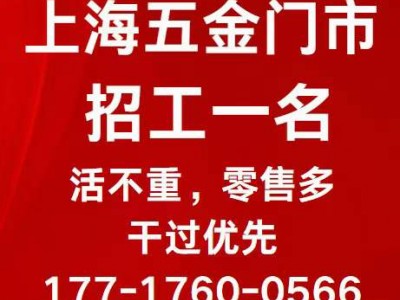 上海五金门市招工:1名,活不重,零售多,干过优先。