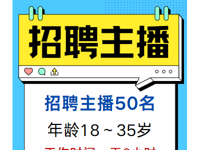 招聘主播50名,年龄18~35岁,工作时间一天6小时,综合薪资5000+上不封顶