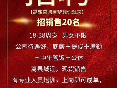 【招聘】【销售】工作时间早上9点-12点,2点-6:30下班;