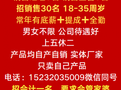 招销售30名,18-35周岁