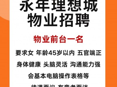 物业前台一名,要求女,年龄45以内,五官端正,身体健康,头脑灵活,沟通能力强,会基本电脑操作表格等,待遇面议