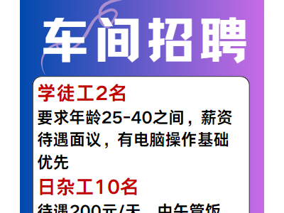 车间招聘