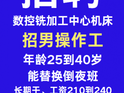 数控铣加工中心机床招男操作工