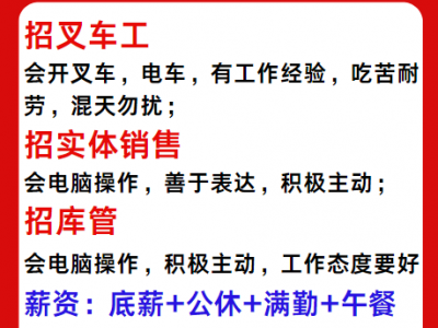 招叉车工,会开叉车,电车,有工作经验,吃苦耐劳,混天勿扰;