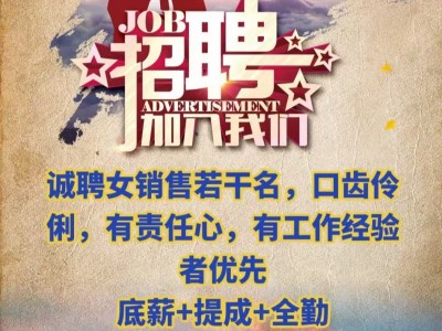 诚聘女销售员若干名,口齿伶俐,有责任心,有工作经验者优先。底薪,提成,全勤。