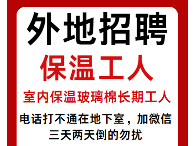 外地招聘保温工人:室内保温玻璃棉长期工人