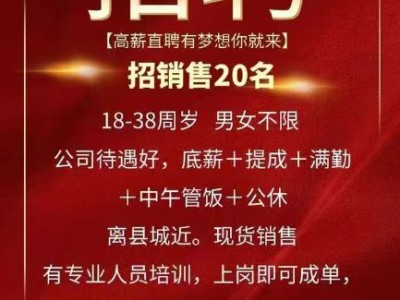 【招聘】【销售】工作时间早上9点-12点,2点-6:30下班;