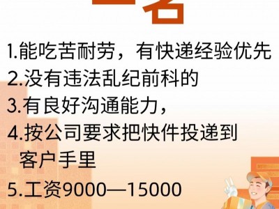 招聘快递员2名 极兔申通共配1.2一票,管住,管一顿饭 工作地点北京市东城区 1.能吃苦耐劳,有快递经验优先 2.没有违法乱纪前科的 3.有良好沟通能力, 4按公司要求把快件投递到客户手里 5.工资9000—15000 联系方式李经理(微信同号)