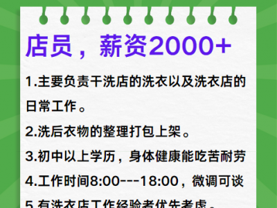 招聘店员,薪资2000+