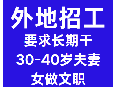 外地招工,要求长期干30-40岁夫妻