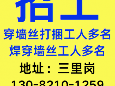 招穿墙丝打捆工人,焊穿墙丝工人,多名;