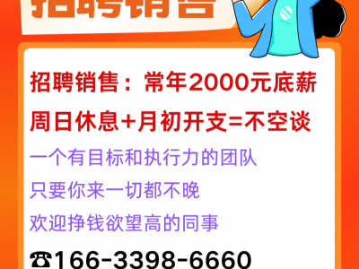 招聘销售:常年2000元底薪+周日休息+月初开支=不空谈。
