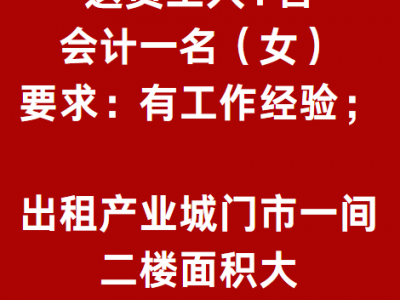 河北铺 招工:送货工人1名,会计一名(女)