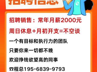 招聘销售:常年月薪2000元+周日休息+月初开支=不空谈。