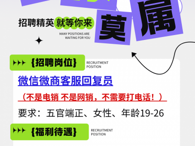 招聘精英,微信微商客服回复员(不是电销 不是网销,不需要打电话!),