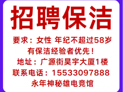 要求:女性 年纪不超过58岁,有保洁经验者优先!