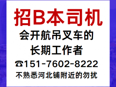 招B本司机,会开航吊叉车的,长期工作者不熟悉河北铺附近的勿扰