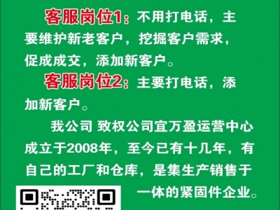 不用打电话,主要维护新老客户,挖掘客户需求,促成成交,添加新客户。 公司氛围好,有想法,想挣钱,踏实认真均可加入!