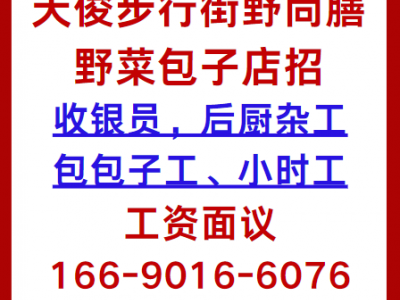 天俊步行街野尚膳野菜包子店招:收银员,后厨杂工、包包子工、小时工、工资面议