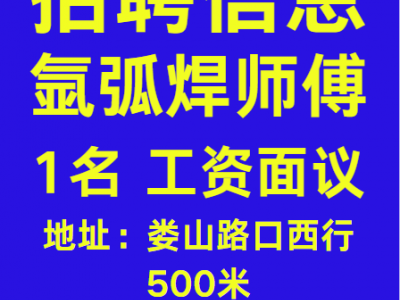 招聘:氩弧焊师傅1名,工资面议,地址:娄山路口西行500米