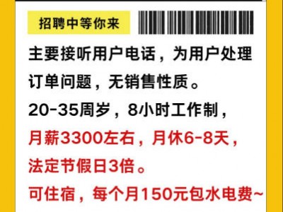 招聘美团外卖拼好饭客服: