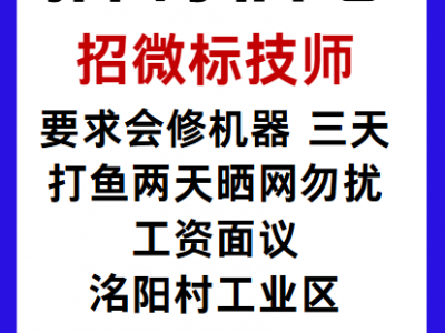 招微标技师,要求会修机器,三天打鱼两天晒网勿扰,工资面议,厂址:洺阳村工业区,联系电话:16632016173,18531077233
