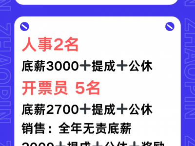 销售:全年无责底薪2000➕提成➕公休➕奖励;