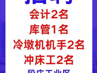 招聘:会计2名,库管1名,冷墩机机手2名,冲床工2名