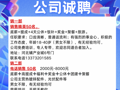 1⃣ 电话销售 50名 2000元-8000元