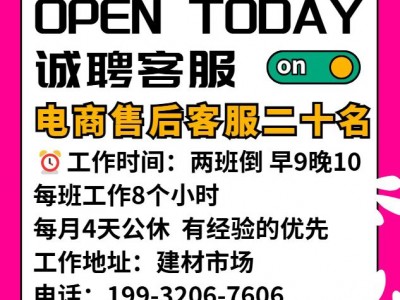 诚聘电商售后客服二十名