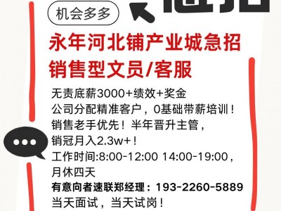 【永年河北铺产业城急招销售型文员/客服】