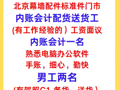 内账会计一名(熟悉电脑办公软件,手账,细心,勤快),