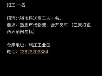 招河北铺市场送货工人一名