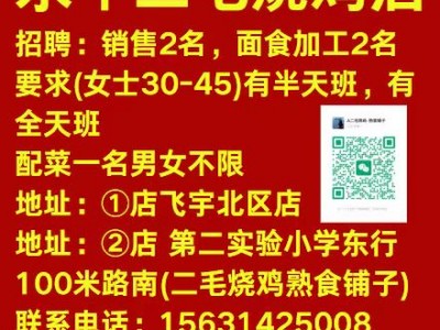 地址:②店 第二实验小学东行100米路南(二毛烧鸡熟食铺子)