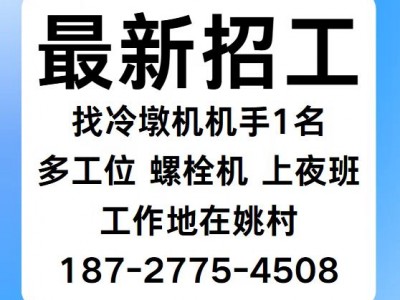 招工:找冷墩机 机手1名,