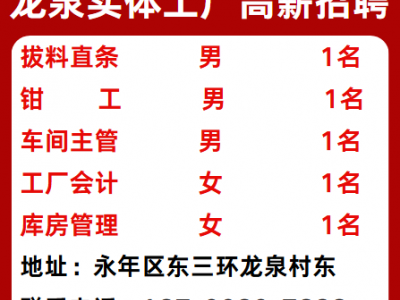 龙泉实体工厂高薪招聘