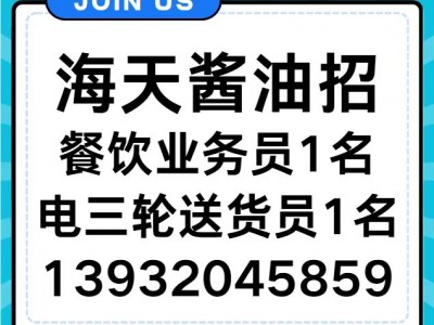 海天酱油招餐饮业务员1名,电三轮送货员1名