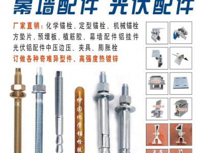 金鉴德机械锚栓,仲固化学锚栓,特殊倒锥锚栓,热镀锌8.8级,幕墙配件,光伏配件中压,边压,夹具,压块
